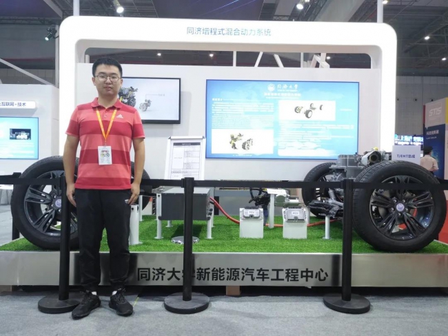 自主研发的一款增程式混合动力汽车,其中也有倪润宇的一份贡献。从前期的仿真分析及策略开发、电气集成设计,到零部件选型,再到整车试制,历经近2年的奋战,倪润宇全程参与了整车开发工作。该原型车参展工博会,获“最具人气路演项目奖”。