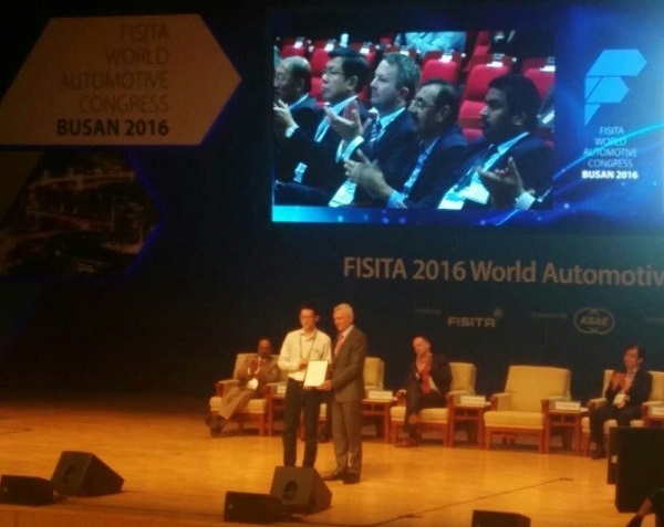 FISITA聚集了全球顶尖的汽车领域企业及科研机构一起分享先进的理念及技术发展,自1948年成立以来,已经发展成为由37个国家汽车工程师学会组成的国际性组织,全球共有21万余名会员,是汽车工业领域的两大顶级国际会议之一。FISITA 2016吸引了来自36个国家共1789位专家学者参与,共有513篇论文发表在10个汽车领域相关方向。会议根据内容创新性、演讲水平等,在每个方向评出1篇获奖论文共10个杰出论文奖,本次获奖论文属于“Advanced Vehicle Concepts”方向。