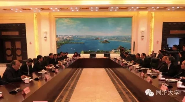 杨贤金在讲话中介绍了环同济知识经济圈建设发展的经验,他说,习近平总书记在上海汽车集团考察时强调,发展新能源汽车是我国从汽车大国迈向汽车强国的必由之路。同济拥有智能型新能源汽车协同创新中心、新能源汽车国家工程中心、上海地面交通工具风洞中心等重大科技平台,在新能源汽车领域开展了十多年的深入研究,拥有雄厚的学科力量。希望通过校地合作,将学科优势转化为产业优势。同济还拥有巨大的人才资源和智力资源,要通过校地战略合作,促进产学研深度结合,汇聚成推动地方经济社会发展的强大动力。