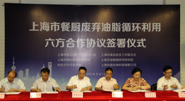 、市食品安全工作联合会、上海市华谊集团技术研究院和上海中器环保科技有限公司在我校嘉定校区新能源汽车工程中心举行“上海市餐厨废弃油脂循环利用六方合作协议签署仪式”,会议及合作协议签署仪式取得了圆满成功。
