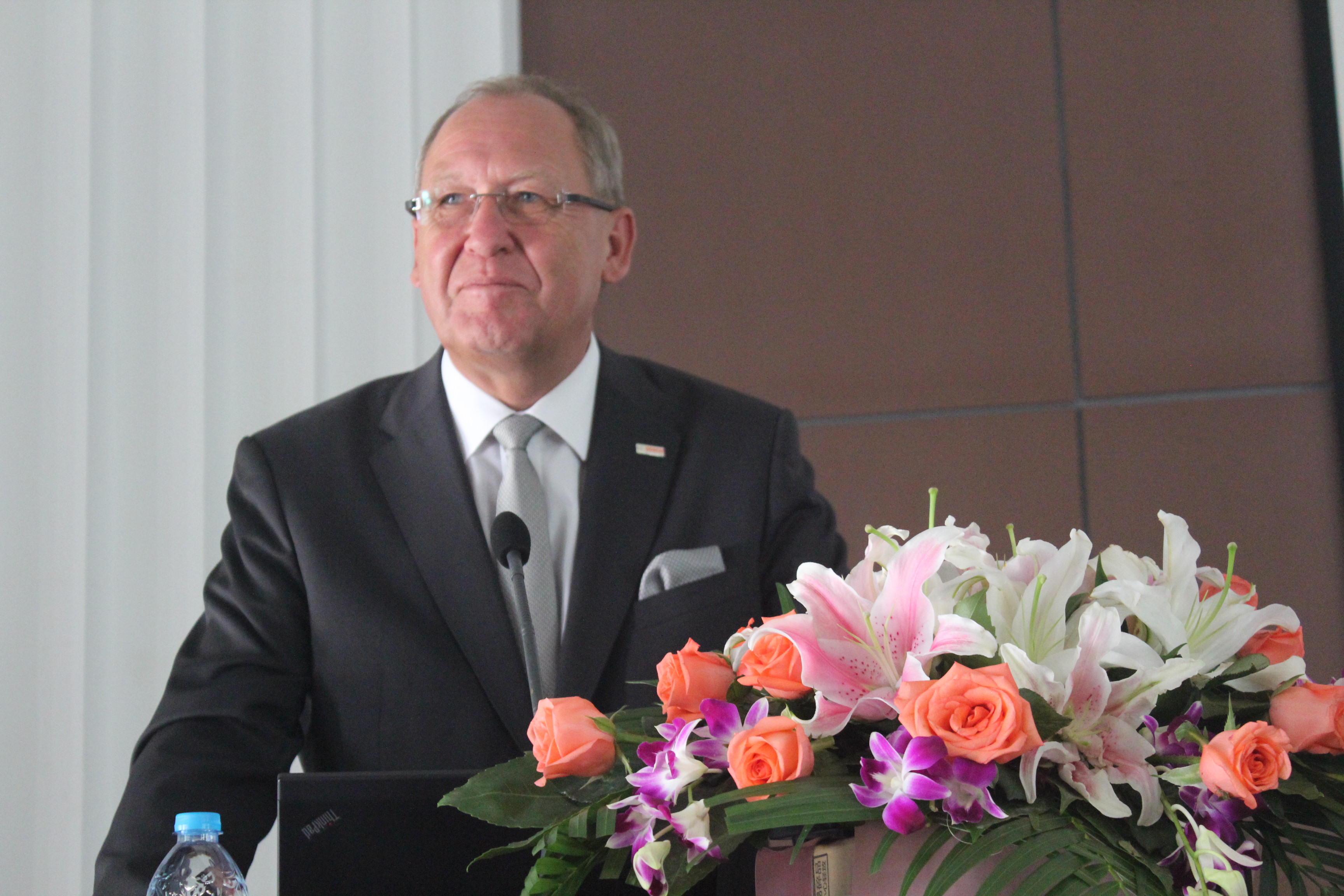 仪式后,Dr. Karl Nowak开始正式讲座。在演讲中,Dr. Karl Nowak不时走下讲台,与同学进行互动和面对面的沟通交流,场面气氛活跃、轻松,教授以他严谨的工作态度以及幽默风趣的谈吐,使每一位同学都对博世公司有了更深入的了解。