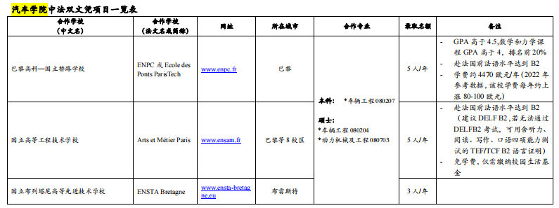 与法国国立桥路大学(ENPC)共同签署中国境内第一 个颁发法国工程师文凭的中法双文凭合作项目协议;之后,该模式拓展至与十余所工程师学校的合作,每年招收p站