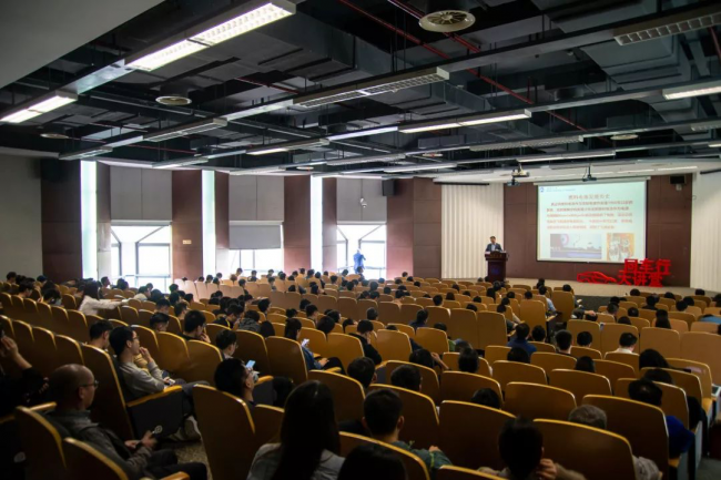 新能源汽车工程中心二楼报告厅开讲。本次讲座邀请到了武汉理工大学首席教授、博士生导师、材料复合新技术国家重点实验室副主任潘牧教授为大家带来主题为“能源互联网关键技术——燃料电池”的讲座。此次讲座吸引了百余名来自p站