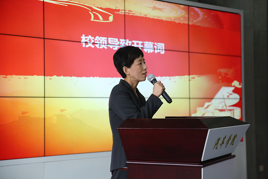 风采展示厅落成表示祝贺并对学院文化建设工作表示肯定,鼓励学院继续开拓创新,对校区文化建设给予大力支持。