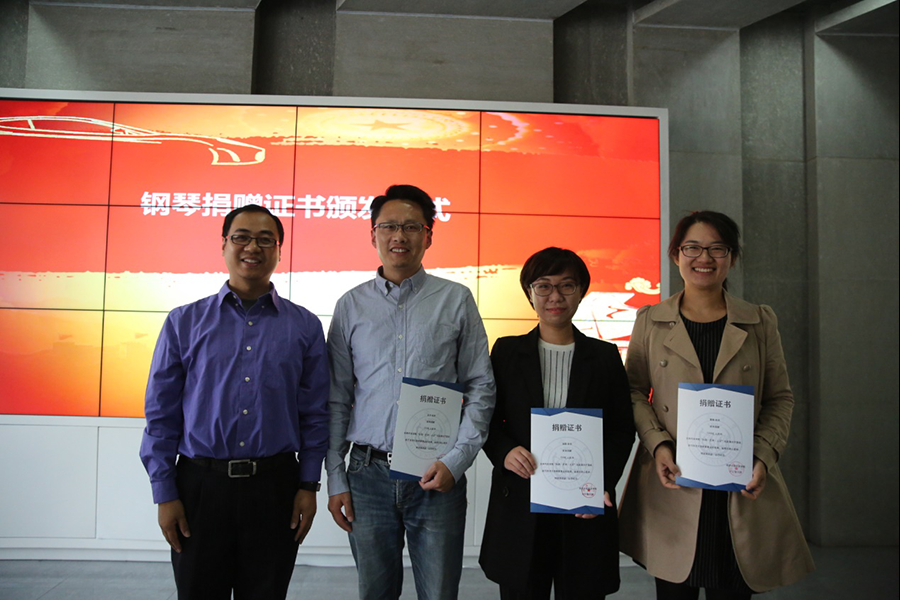 党委副书记邓俊老师为捐赠教师代表颁发了钢琴捐赠证书。