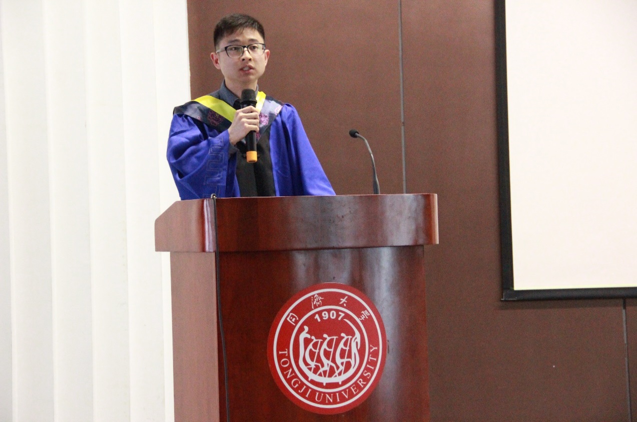在会上,楼狄明教授作为导师代表首先对同学们顺利毕业表示祝贺,在肯定硕士毕业生的学术水平与科研成果的同时,表达了对毕业生的不舍之情。楼教授还希望大家既要学会学习,不断给自己充电,更要学会学以致用,让自己放电,只有释放自己的才华和本领才能有所成就,有所收获。上海市优秀毕业生郭石磊作为毕业生代表对p站