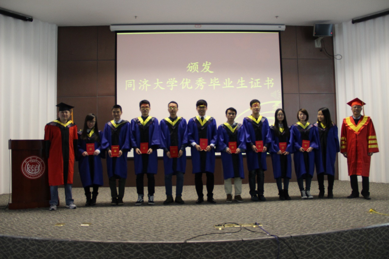 最后在全体毕业生和到场家长们的共同见证下,各位教授上台为毕业生拨穗,并颁发毕业证书与硕士学位证书。在慷慨激昂的《同济校歌》中,2016届研究生毕业典礼圆满结束。