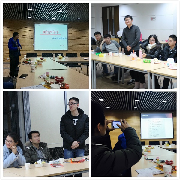 仰泰山之高,而有凌云之志;窥幽谷之深,而生探秘之心;见贤思齐,学无止境耳。诚然,学硕一班全体同学入学以来取得了优秀的成绩,然而,就科研学术、实践求技、升学求职等抉择规划未必尽善。1月16日,值此辞旧迎新之时,2015级学硕一班召开了班级年会暨优秀学长交流会。活动由班长张光辉主持,2015级学硕一班班主任葛畅老师、2014级唐文博、俞佳伟、龚学海、刘越等四位优秀师兄出席。
