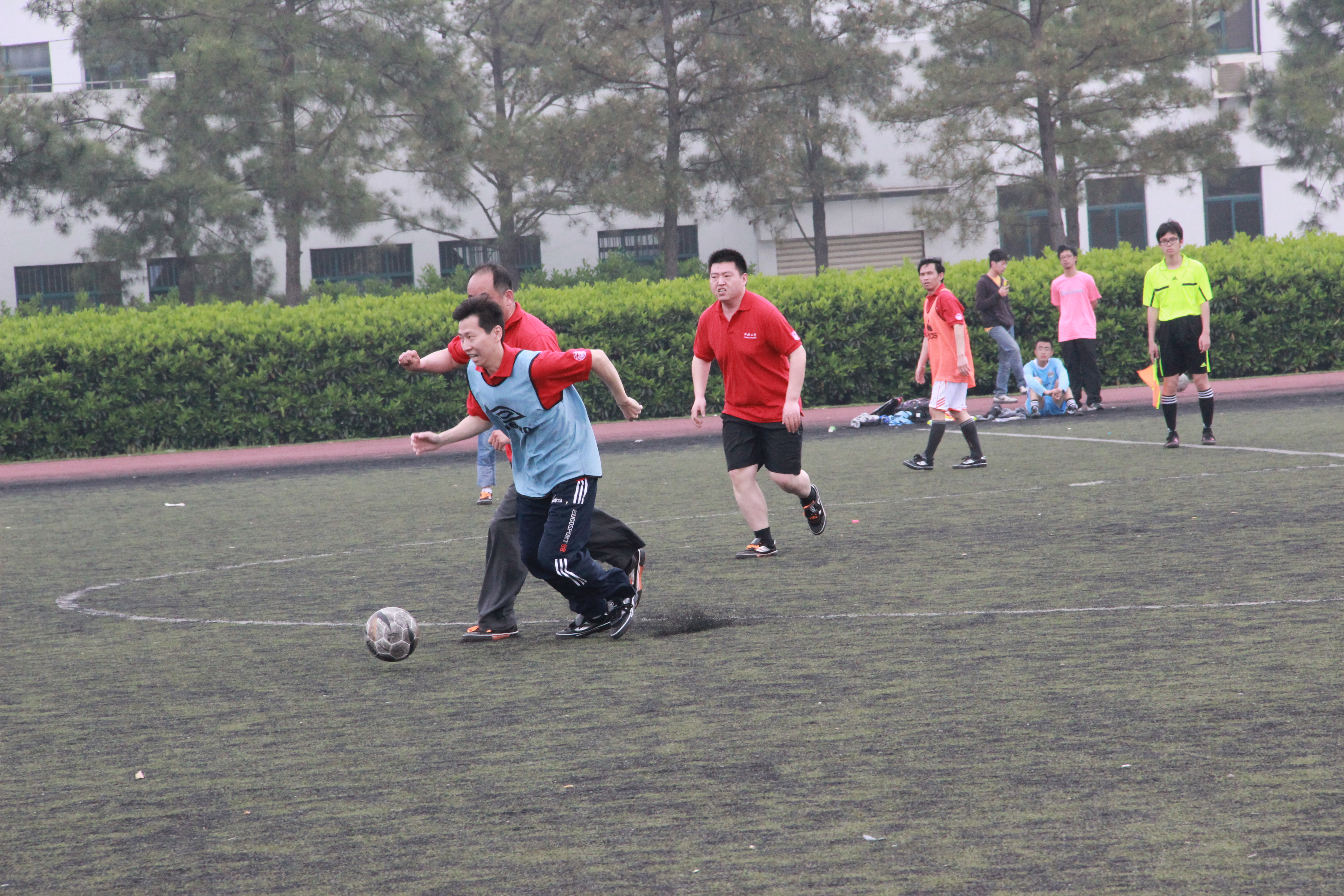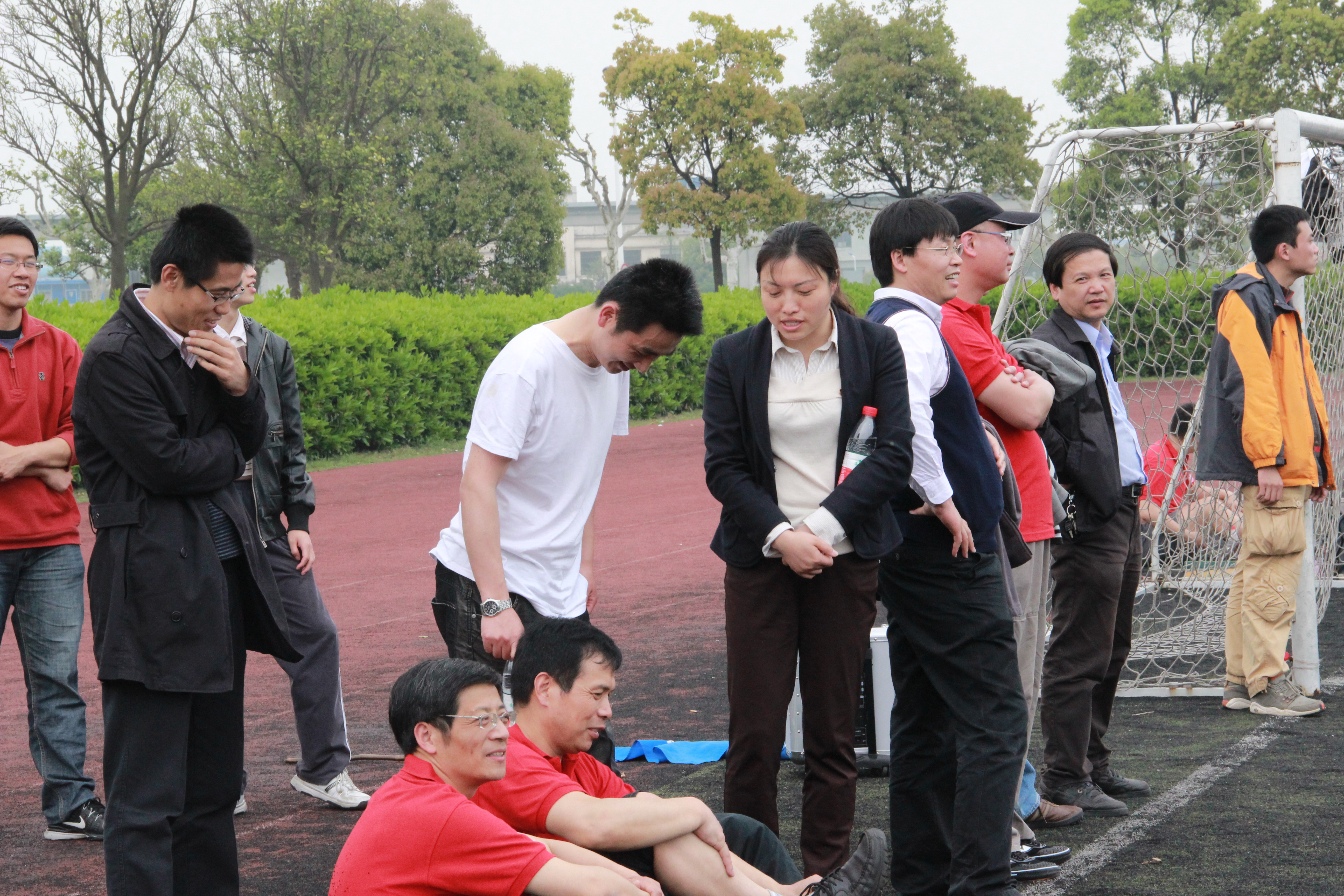 4月19号中午,由p站 团委、工会、学生会主办的第九届足球比赛进行了一场别开生面的教职工大战,对阵双方由同济汽车设计研究院职工队与p站 教职工队。绿茵场上队员有50后也有80后,比赛中个个挥汗如雨,场下学生欢呼雀跃。汽车设计研究院院长吴宪、p站 党支部副书记曹静、p站 工会主席刘继跃观看了比赛。经过30分钟的比赛,两队0-0握手言和!