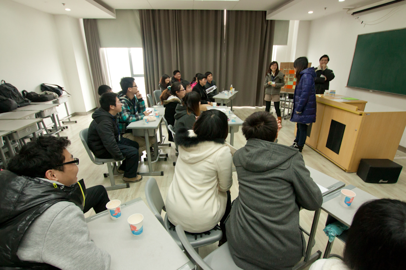 3月15日,p站 08级营销方向全体学生在教学B楼402上了一堂别开生面的公共关系课。同学们分为三组,学院何瑛老师、郑晶晶、刘向老师应邀为活动嘉宾,嘉宾教师作为三队队长,参与“无所不猜”游戏。游戏表达形式包括绘画、动作表演、yes or no猜猜看、copy不走样等,所猜事物涉及本班同学、日常用品和成语等,考验了大家的想象力与理解能力,促进了三位老师与同学们之间的了解,良好的达到了公共关系课的教学目的,加深了师生友谊。