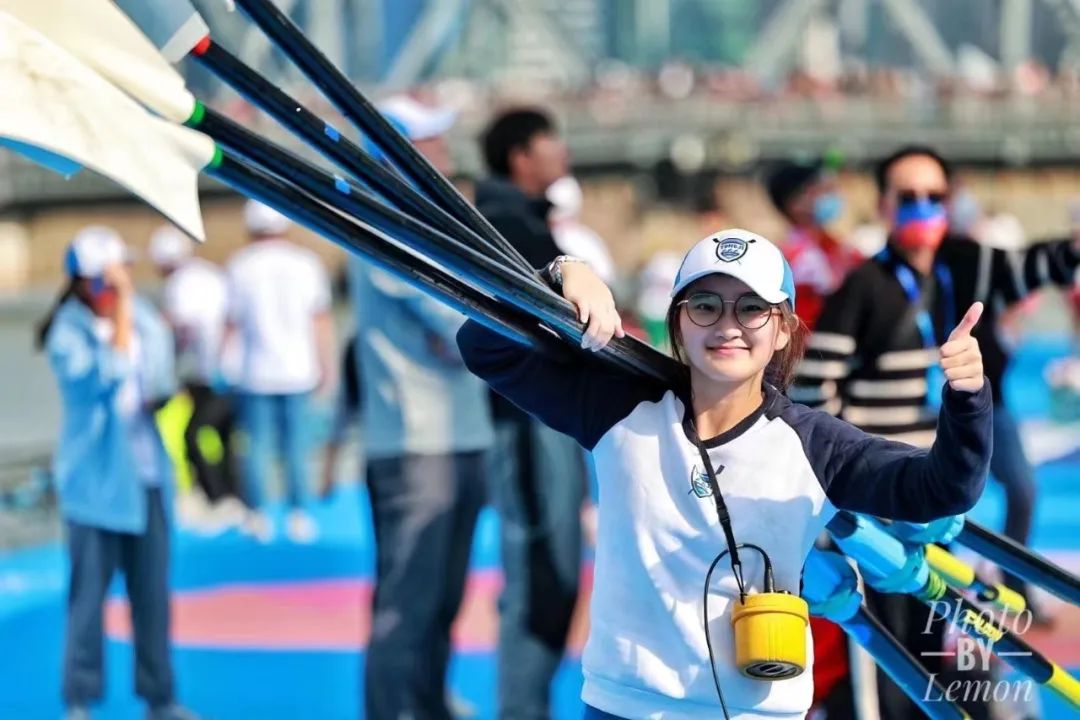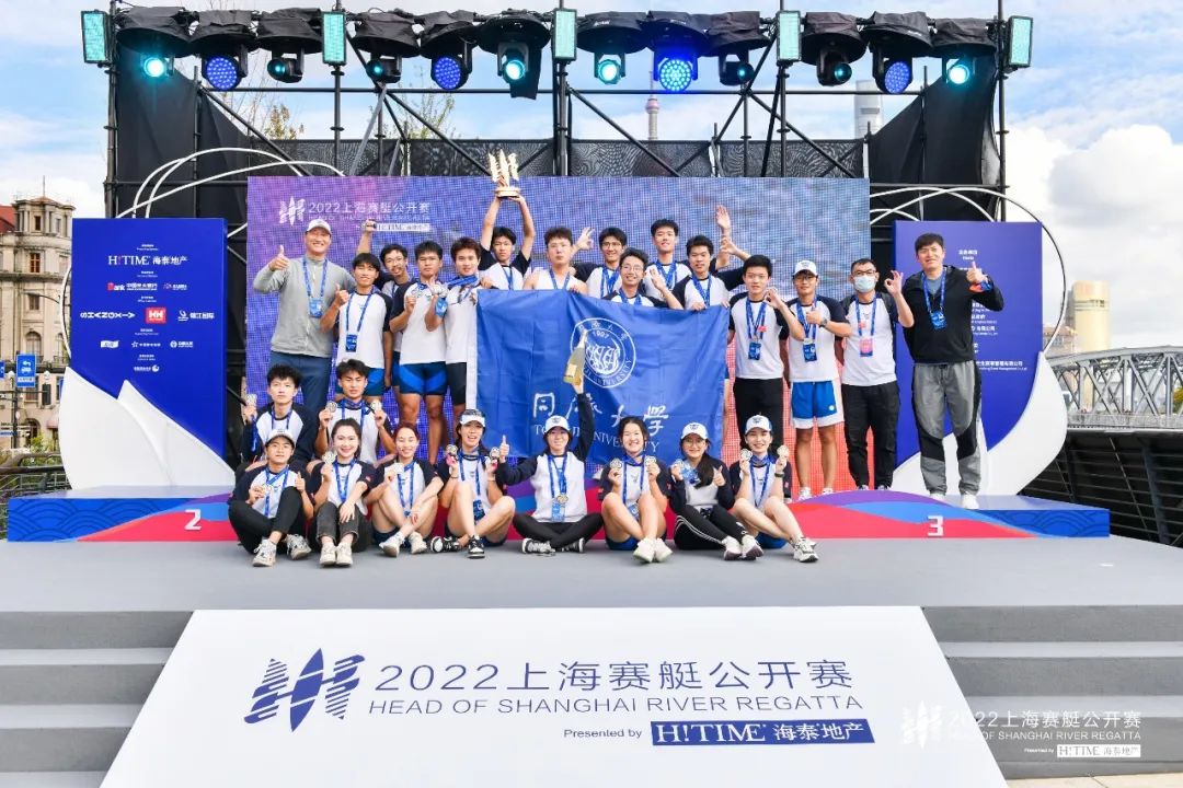上海赛艇公开赛赛道设置于上海的母亲河苏州河,为八人艇打造长距离4.2km城市追逐和短距离500米城市冲刺。从这场赛事的设置、规格和举办,让我感受到的是城市的繁华与体育的拼搏精神的融合,令人向往。在争夺冠军的赛道上,我们更多的是在享受这场比赛,享受划过苏州河的每一个弯道、每一座桥的神奇感受,在比赛中屏蔽周围的呼喊,专注每一段赛程的冲刺;我们不再畏惧兄弟院校的几位专业运动员的实力,而专心致志的划好每一桨;每一次蹬腿发力,我都感受到队友的力量和决心,这也是支撑我坚持的信念感。4.2公里,我们凭实力、凭专注、凭信念,漂亮地完赛!奖杯是努力的馈赠,但我更感激我的队友,能够和队友一起在一条船上拼尽全力,真的令我感到无比的荣幸和幸福。