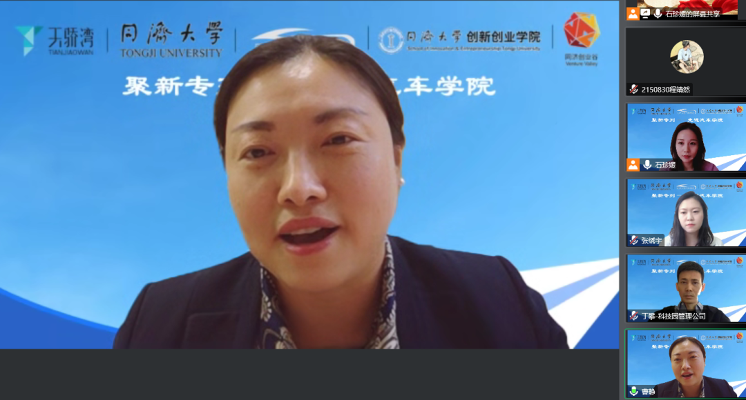 科技园嘉定园师生创业服务中心丁晓霞介绍了同济科技园嘉定园的主要项目和资源支持情况。
