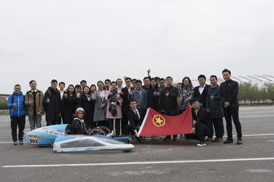 讨论环节结束后,在工作人员的带领下,大家来到学院试车场,观看志远车队的节能赛车试跑,并且与车队队员及车手进行了亲切交流。