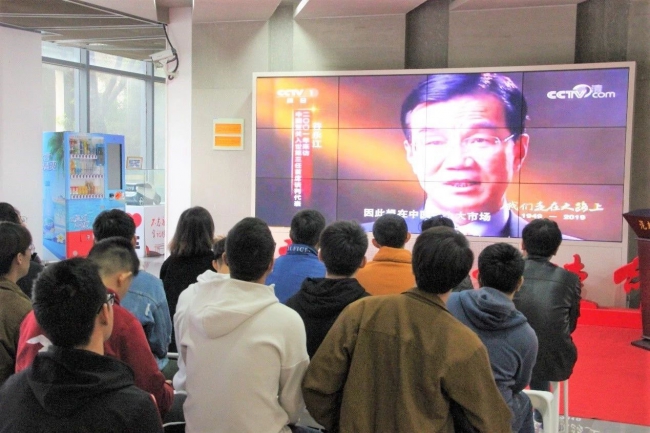 本次学习活动采用分享感悟与视频学习的形式。学生党员代表结合自身专业实际,分享“不忘初心,牢记使命”的主题教育学习感悟,随后所有党员一同观看了《我们走在大路上》第十二集:《融入世界》。