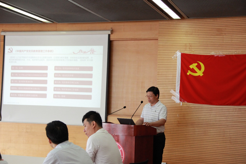 之后,学院党委副书记、院长张立军同志上专题党课,带领全体党员学习《中国共产党党员教育管理工作条例》。张立军同志重点阐释了总则、党员日常教育管理主要方式、党员监督和组织处置、党员教育管理信息化等内容。