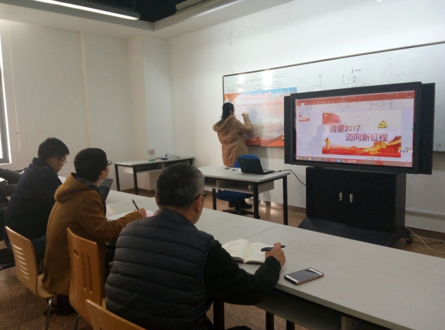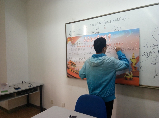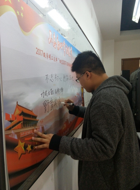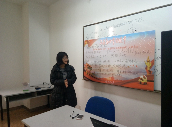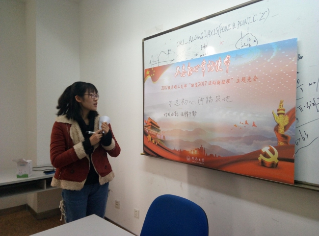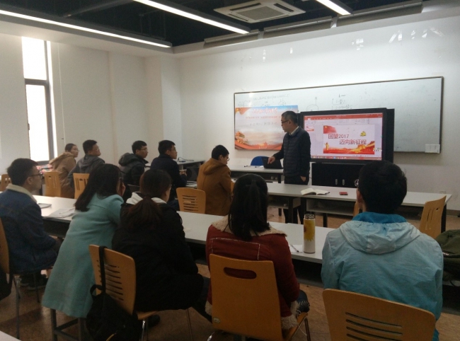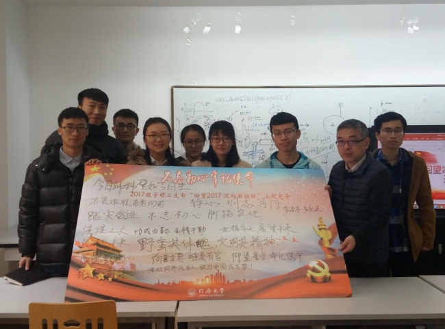 2017年12月27日中午,2017级学硕二支部举办了“回望2017,迈向新征程”主题活动,组织支部所有党员回顾支部自成立以来开展的各项工作与活动,观看“党的历史缩影之回顾历次党代会”微党课,并号召所有党员回顾2017展望2018,最后每位党员在留言板上写下了对自己的要求,提醒自己2018年向着目标努力奋斗。联系本支部的党委委员、p站