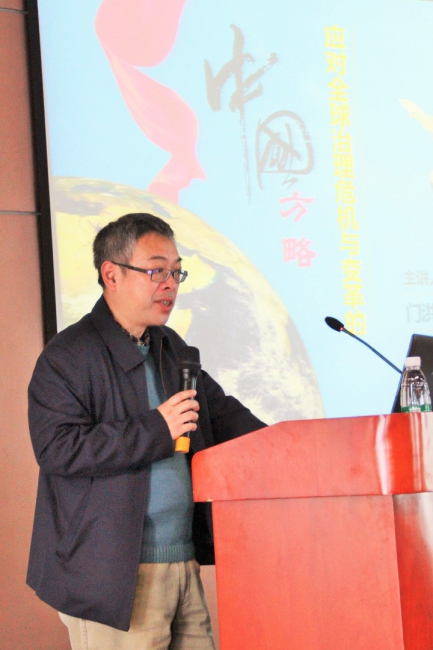 党委特邀报告的历史和近期学院各项学习研讨活动,并代表学院师生对门洪华老师表示热烈欢迎。