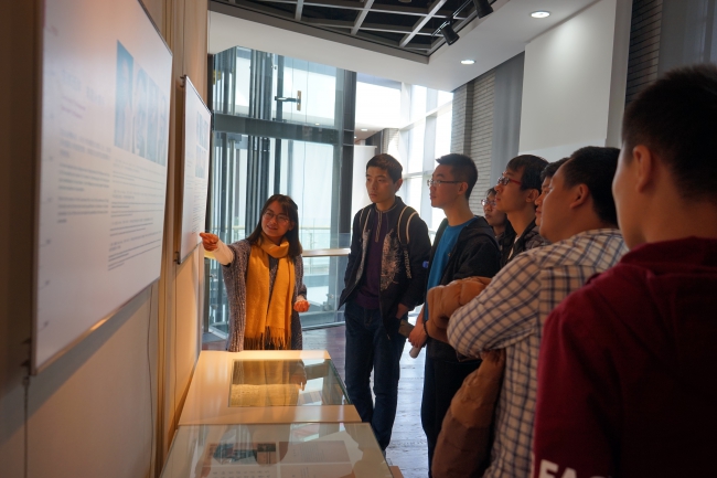 博物馆,馆内正在举办何镜堂院士的建筑作品展——“地域性、文化性、时代性——何镜堂:为激变的中国而设计”。何镜堂院士的作品集中的体现了处于变化中的中国的发展变迁,让党员们欣赏优美的建筑作品的同时,也感受到身为同济人、身为研究生党员,将个人发展与祖国未来紧密联系的庄严使命。