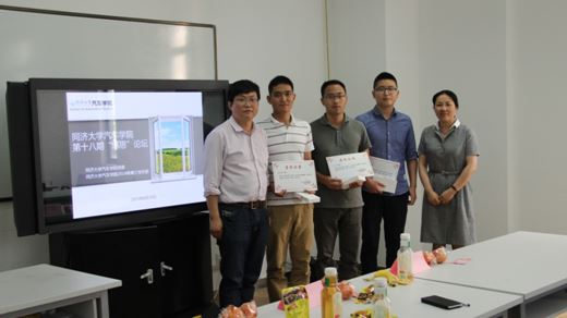 三位博士的讲演结束后,林瑞教授和赵治国教授向他们颁发了荣誉证书、纪念品,大家合影留念。p站