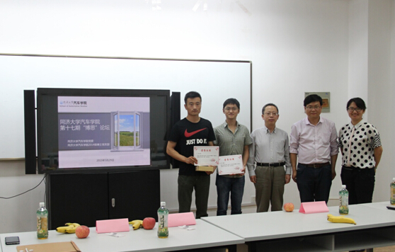 的于蓬博士是第二次参加博思论坛,本次他讲演的题目为《集中驱动式纯电动车抖动分析及主被动控制研究》,他准备了两个ppt对此进行了由浅入深的说明,不仅在上次研究的基础上更进一步,其成熟与睿智的讲演风格也引起了在场博士的连声赞叹,获得了点评博导的一致认可。在座的博士生们也与主讲人进行了沟通交流,整场报告的氛围认真又不失轻松,热烈又不失融洽。