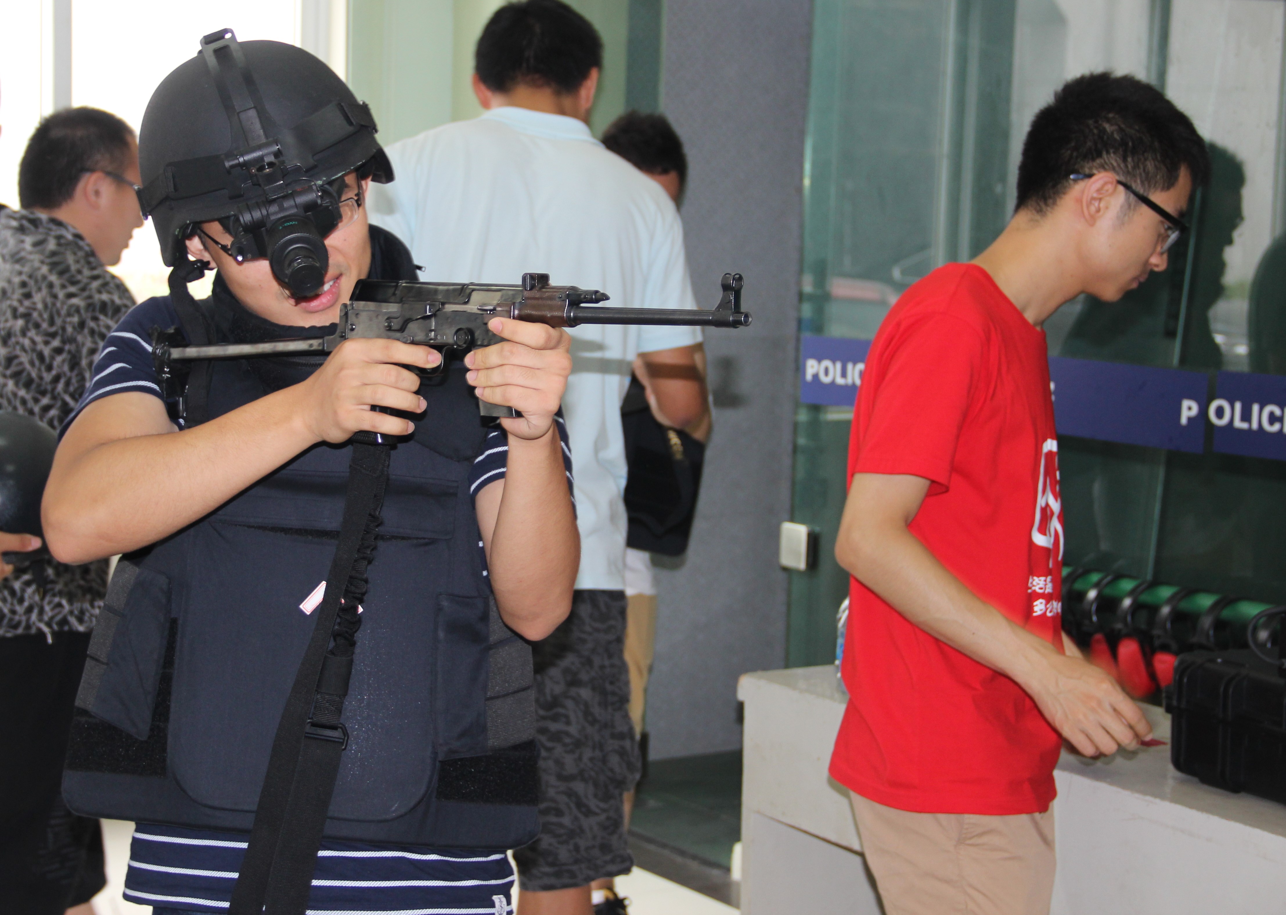 开班仪式结束后,同学们跟随王警官乘车前往嘉定公安分局局史室、看守所、特警队进行了参观学习。在分局局史室,同学们了解了嘉定公安分局的警力组成、结构,以及日常的警务安排;并且了解了嘉定公安分局的历史和曾经侦破过的大案要案,使同学们对公安民警肃然起敬。随后,在看守所,同学们从总控室了解到在押犯罪嫌疑人们的日常生活,饮食起居,通过民警的介绍可以知道,看守所对待犯罪嫌疑人的日常生活寄予了足够的关注,充分保证了他们应有的人权。行程最后,同学们参观了嘉定公安局特警队,在特警战士的介绍下,同学们了解了他们的训练内容、武器装备情况、外出执行任务的要求等内容;看到他们兢兢业业的训练态度,不畏牺牲的奉献精神,以及对于各种武器装备的熟练使用,使同学们对于警察队伍有了更强大的信心,同时也对我们作为公民的安全更加放心;特警战士们优良的武器装备也极大地吸引了同学们的眼球,料敌于先的微光望远镜、红外夜视仪,坚固可靠地头盔、防弹衣和盾牌,决胜千里之外的狙击步枪以及远近程坚固的75式微型冲锋枪,相信这些精良的装备是特警战士们对抗犯罪分子、保护公民安全的有力保障。
