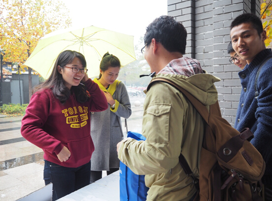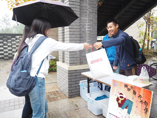 活动当天,天公不作美,上午就开始淅淅沥沥的下起了雨,为了保障参与捐赠活动的同学方便,活动依旧正常进行。下课后活动引来很多人围观,好多刚刚了解到的活动的同学表示对活动的关心,并且趁着中午的时间赶回去收拾衣物,参与其中。