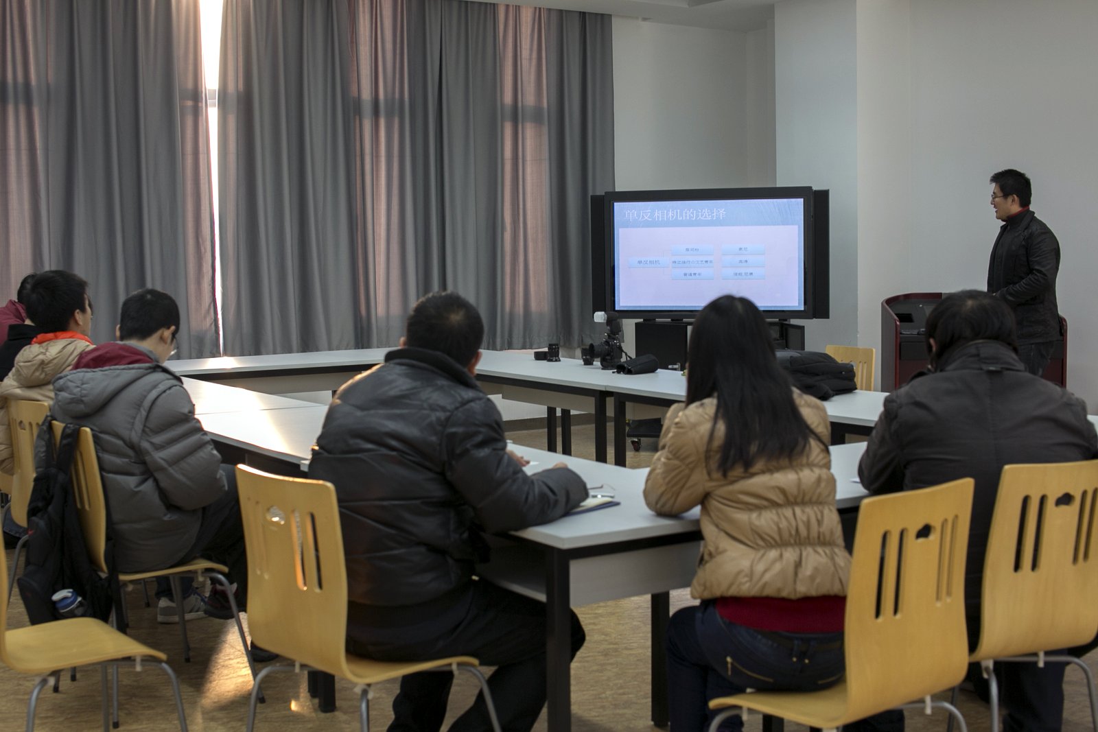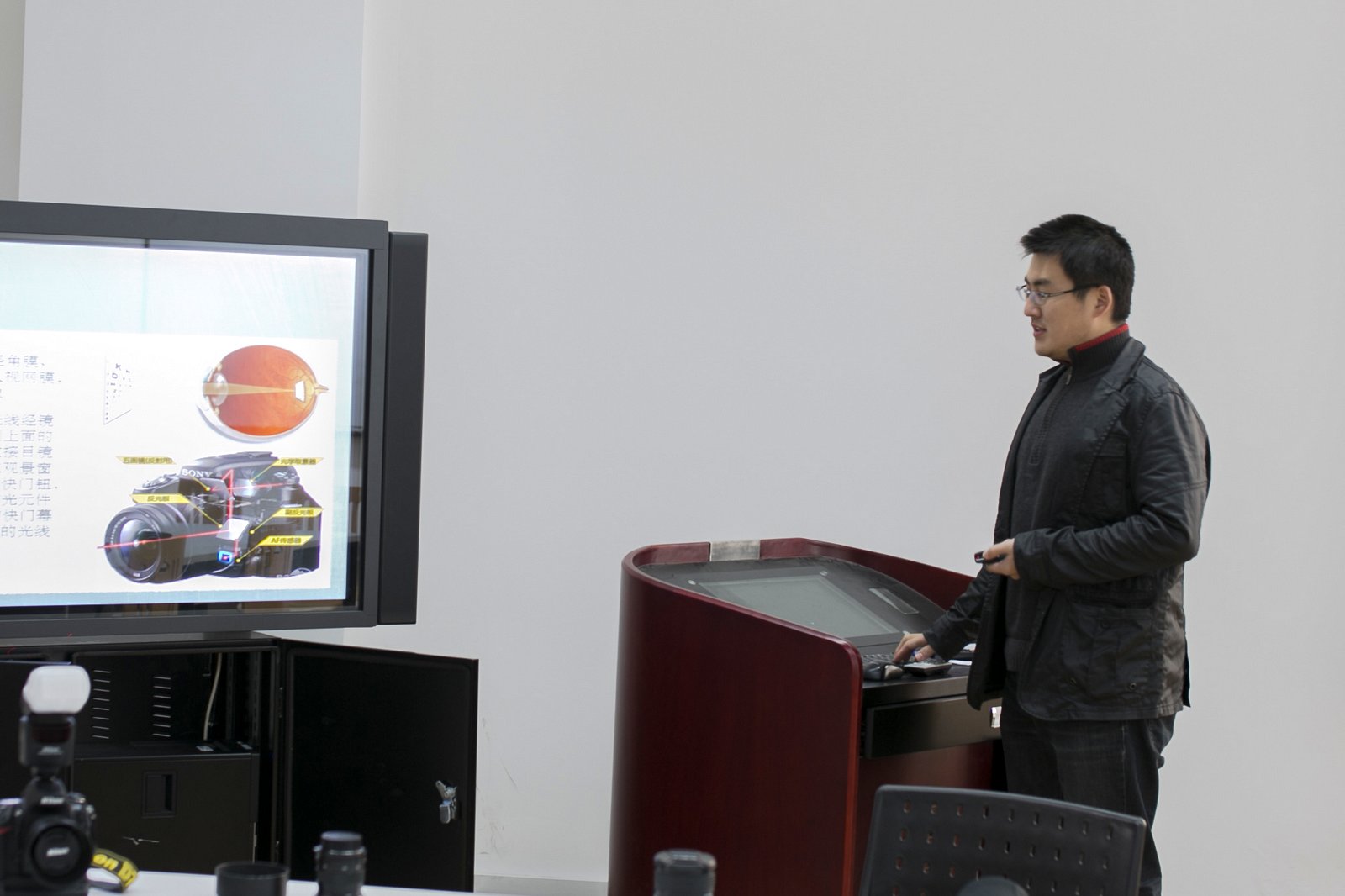 张乐希现为复旦大学医学院医学博士生,复旦大学摄影协会副会长,是资深摄影发烧友。讲座中,张乐希结合自身医学专业,通过解释人眼的原理阐明单反相机的工作原理,并对光圈、快门、感光度等摄影基本常识做了介绍,还就现场所带摄影器材介绍了数码摄影时代相机和镜头的相关参数。除了基础性的理论讲解外,张乐希实例分析了摄影中不同视角所达到的不同效果以及正确的用光和构图手法,通过一幅幅摄影作品让大家对“如何拍出一张好照片”这一终极问题有了非常直观的感受。在介绍摄影知识的同时,张乐希就市场现有的各档次摄影器材做了对比分析,对大家日后购买相机与镜头起到很好的指导作用。
