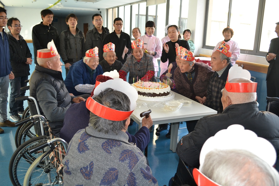 参加了在黄渡敬老院举行的“为老服务爱心联盟”公益项目启动仪式、为老人捐赠棉被等物资之后, 2012级学术型硕士一支部和专业型硕士一支部再次来到黄渡敬老院为老人们过集体生日。