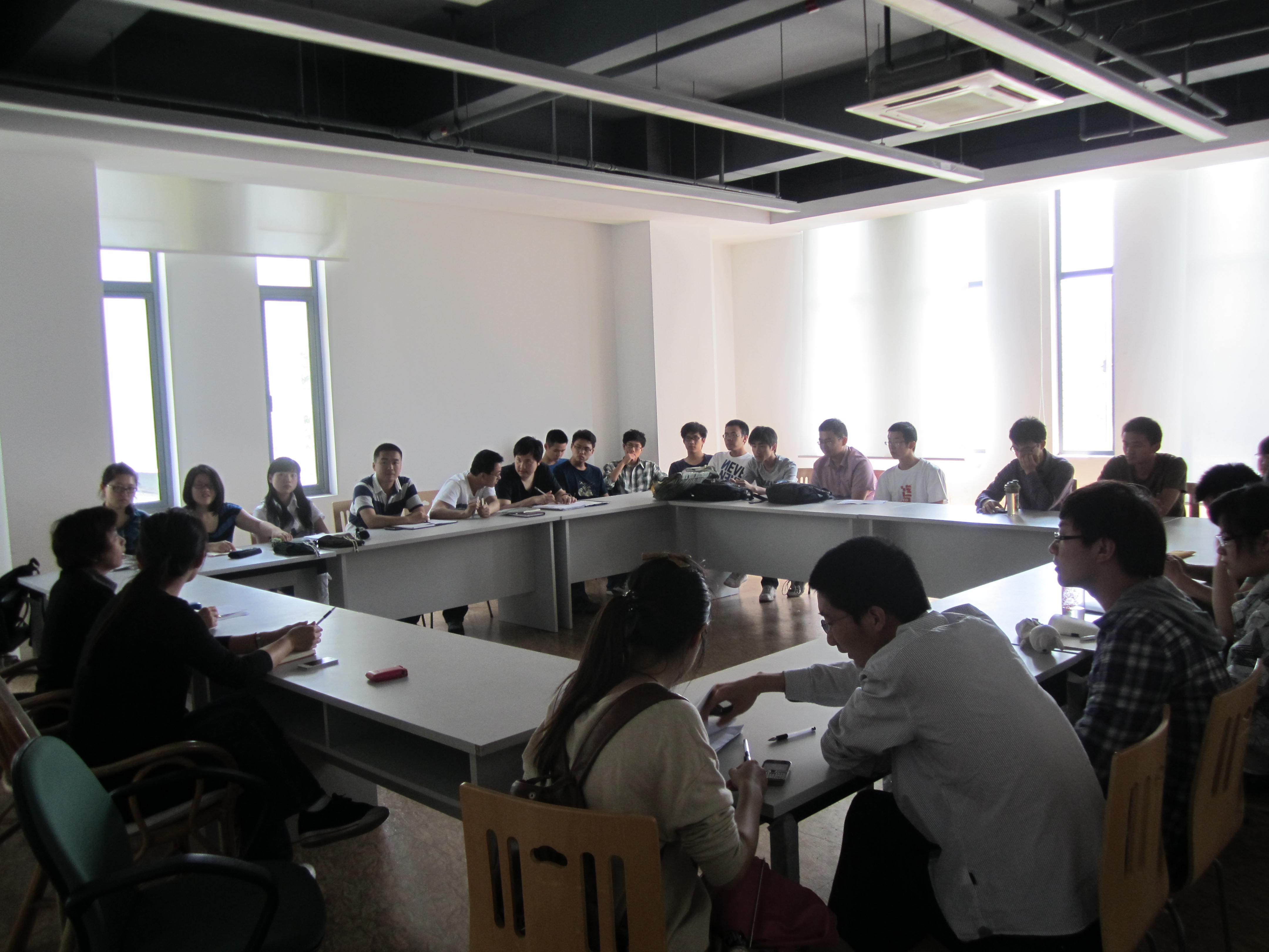B206教室里开始了针对2012年春季入党积极分子的关工委座谈。作为本次座谈的特邀嘉宾,p站
