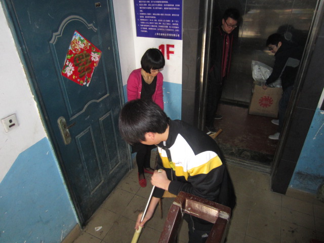 社区的沈佳燕老师简单的介绍了我们今天的主要任务——将自行车放入规定的停车区;协助物业清理高层楼道易燃垃圾——8名同学便兵分两队,各自展开工作。