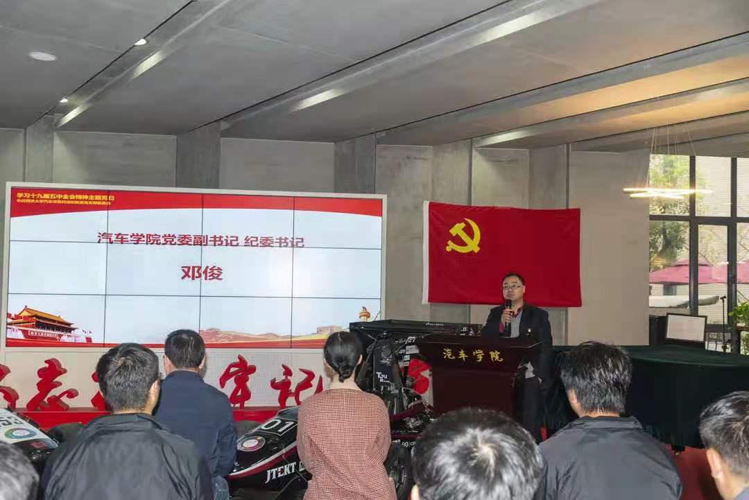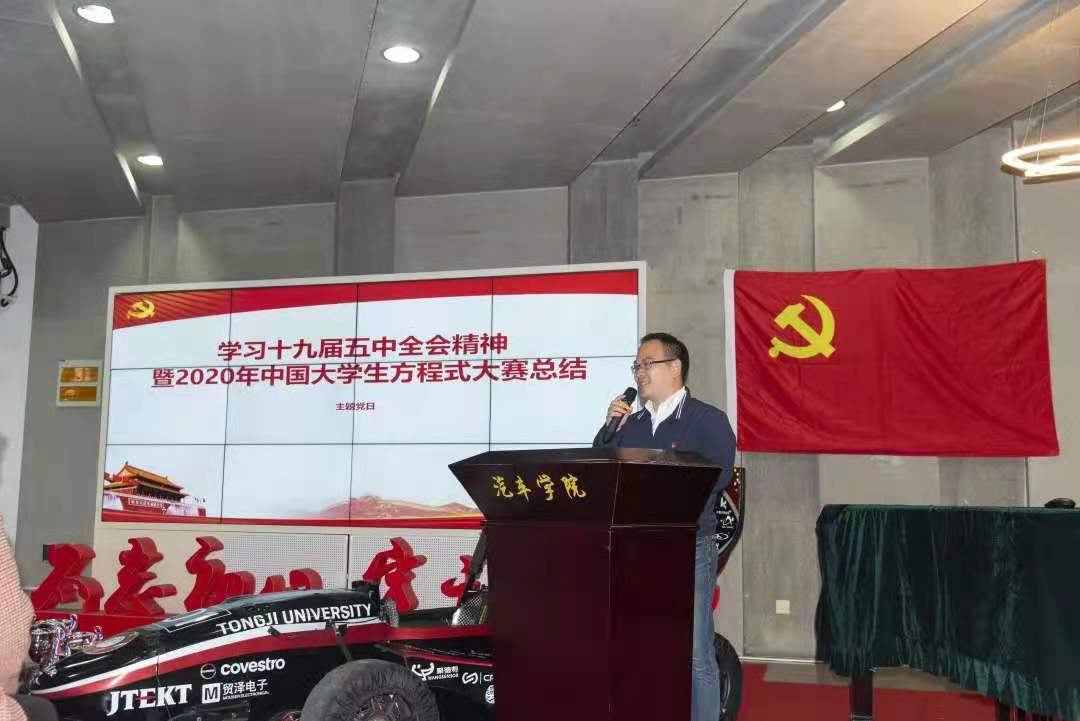 本次主题党日活动,以学习十九届五中全会精神为主题,希望广大师生,以2020年中国赛的成绩为新的起点,面对当今世界百年未有之大变局,牢记肩上的使命和责任,坚持创新,书写同济汽车人的青春风采。