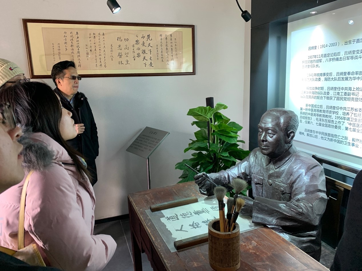 作为“四史学习”的一个重要实践活动,通过此次实地考察学习,更进一步加深了抗日战争和解放战争历史的认识和理解。外冈游击队作为当时嘉定郊县三支抗日武装之一是吕炳奎同志1938年变卖家产组织的,在1938到1939年期间外冈游击队火烧日军飞机、伏击日军汽艇、协助叶飞部歼灭邓敬烈顽军、八字桥痛击日军,所有党员老师均对吕炳奎同志所领导的外冈游击队的抗日英勇事迹表达了崇高的敬意。