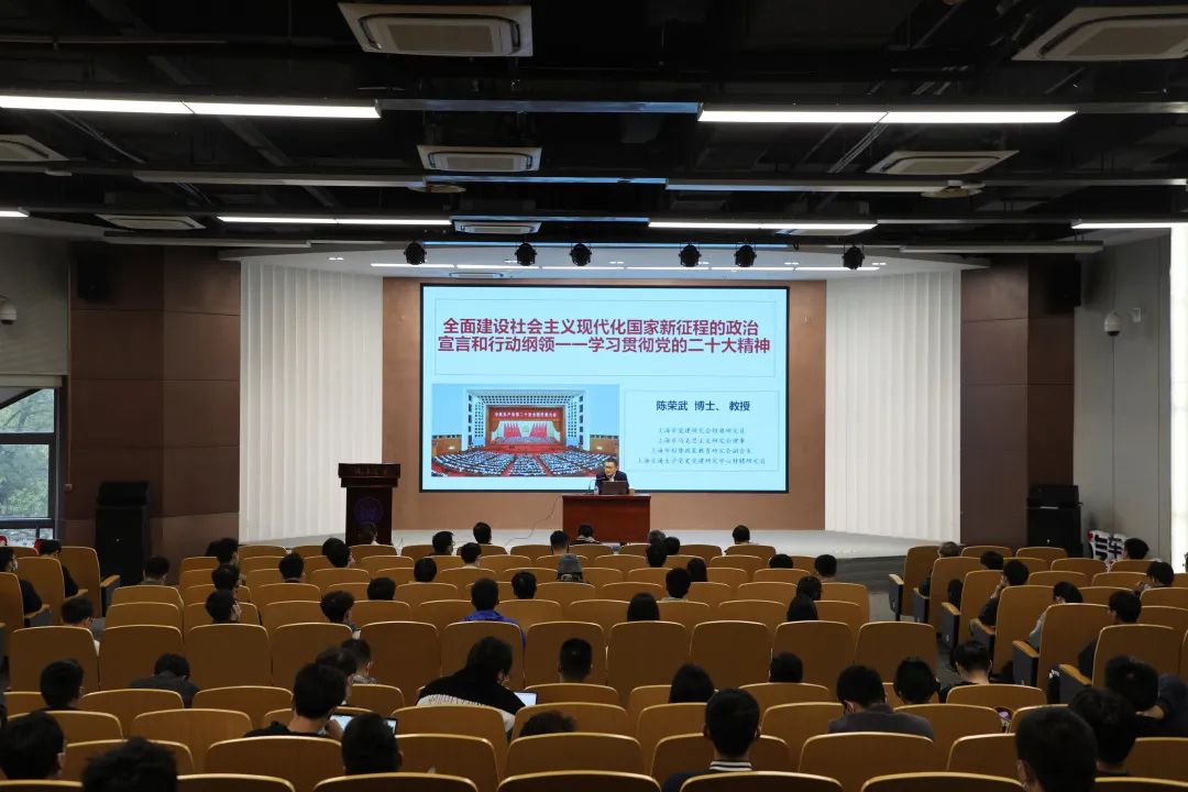 第四十九期“同车行”党委特邀报告于新能源汽车工程中心二楼报告厅举行。上海市党建研究会特邀研究员陈荣武教授为学院师生党员带来“全面建设社会主义现代化国家新征程的政治宣言和行动纲领——学习贯彻党的二十大精神”主题报告。p站