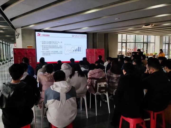 本次理论学习的主题为《论科技创新与科技强国》,分为党史学习分享、汽车新技术分享以及汽车新四化与十四五规划三大部分。学生代表通过《壮阔东方潮,创新强国路》回顾了党发展历程中的科技思想,并结合课内学习知识分享了高精度地图在智能驾驶中的应用,教工代表则以汽车新四化与十四五规划为切入点,分析了中国汽车未来的发展。