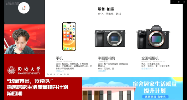 在本次直播中,林慈丰同学首先分享了自己成为一名up主的心路历程。从来到同济的第一个视频的爆火,到后面一步步坚持不懈做出了更多更高水平的视频,在这一年半的时间中,林慈丰兴趣使然又精益求精,不断磨练自己的拍摄技巧与剪辑水准,让自己在新媒体材料的制作上取得了长足的进步。
