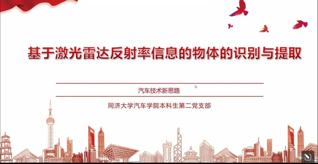 本科生第二党支部的李尚文同学通过激光SLAM定位原理、现有激光SLAM的优劣势及应对、激光SLAM的一种新的应用角度和结果与前景几方面,详细介绍了基于激光雷达反射率信息的物体的识别与提取技术。