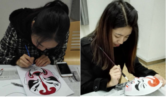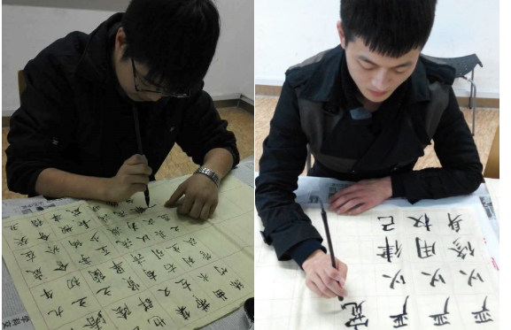 首先,支部利用教室内的电视,播放书法、京剧的宣传视频,让同学们对书法、京剧有了进一步理解;随后,教室中响起了悠扬的古筝、笛子、琵琶等民族乐器演奏 的音乐,张洁、仲益梅同学引导同学们用支部事先准备的笔墨纸砚书写自己对“忠、孝、雅、诚”的理解和认识;最后,翟家琛、夏士翔为同学们介绍了支部准备的 已上色京剧脸谱,并指导同学们参考已上色脸谱并根据自己对的理解和喜好描绘自己心目中的京剧人物。