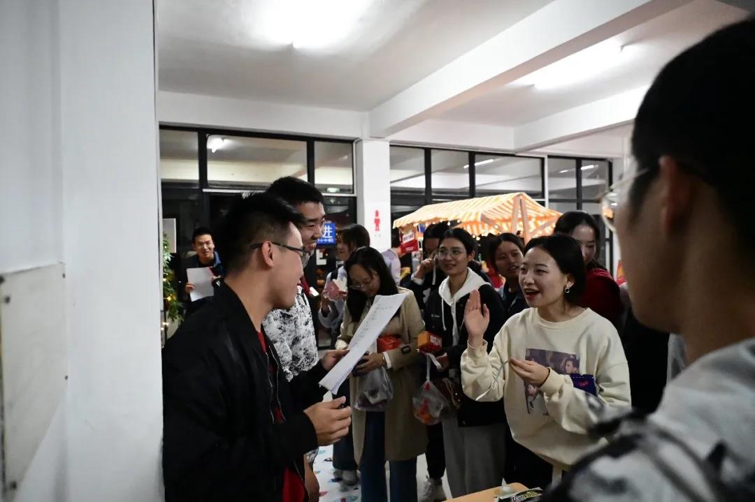 在“题流勇进”环节,支部的工作人员在场地放置了60个盲盒,在每一个盲盒中提前放置学工社科类、前沿实事类、党史类题目以及意外小惊喜,参加活动的同学任意选择眼前的盲盒,回答对应的题目。同学们在欢声笑语中不仅学到了知识,还强化了学习的意识。