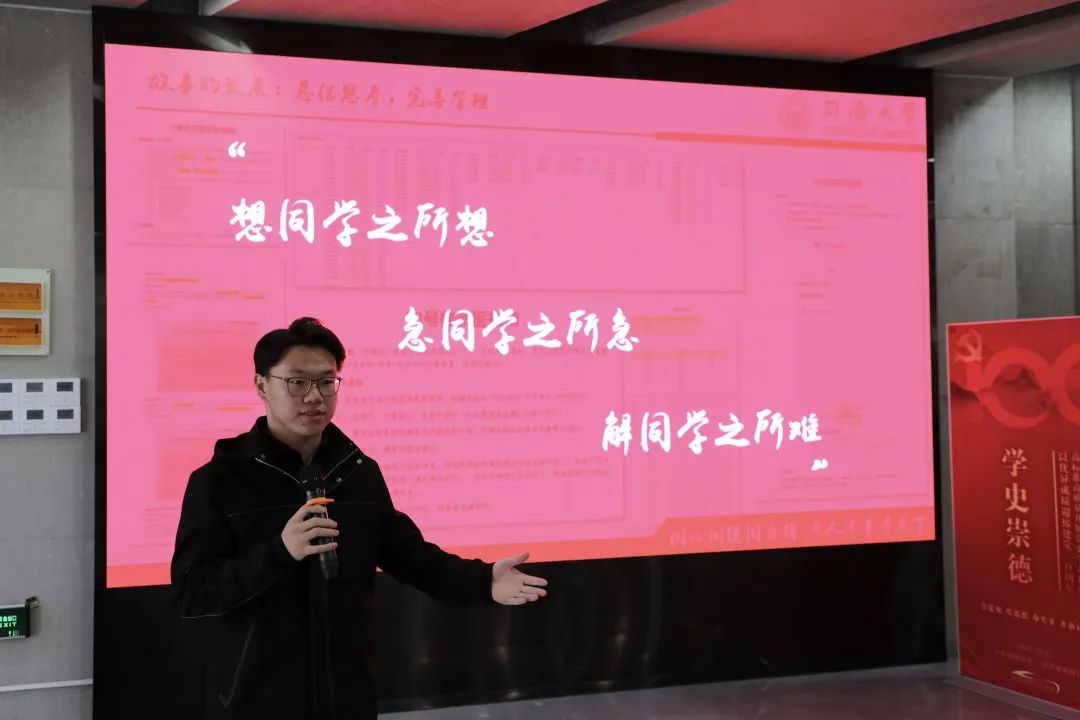 最后,由支部党员、时代声音传播社青年讲师李泽凡带来“党的二十大与我的二十岁”主题宣讲,通过上半年自身的抗疫故事,讲述自己作为党员的青年担当,并勉励大家“青春由磨砺出彩,人生因奋斗而升华,奋斗是青春最亮丽的底色。”