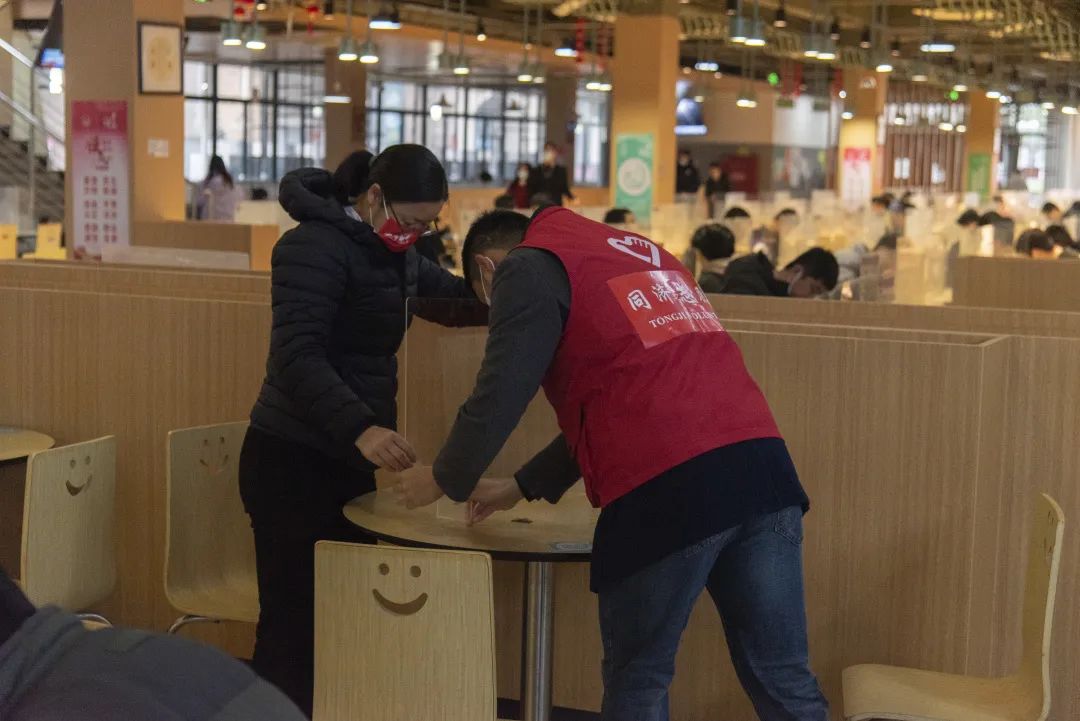 支部党员主动请缨担任志愿者,每天早中晚在食堂内巡查,提醒同学们时刻注意“勤洗手、戴口罩,少流动、不聚集”。在十八支部的引领下,学院已有294名学生党员先后参与到嘉定校区准封闭管理期间的志愿者队伍中,87名学生党员承担起3月21日嘉定校区全员核酸检测的现场组织工作,让鲜红的党旗在防疫一线高高飘扬,志愿者“大白”忙碌的身影书写了时代青年的责任与担当。