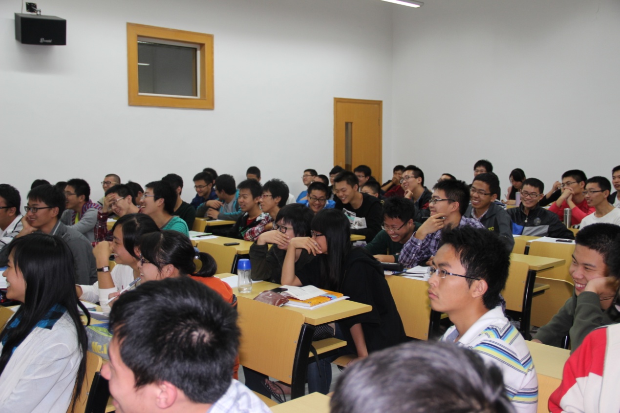 10月17日下午,p站 学生会在p站 四平路校区南楼414为12级一百七十余名新生召开了学长交流会。交流会邀请了院高年级曹卢、王骁正、俞佳伟和卫纬四位同学,分别介绍了学习技巧、创新基地、专业方向和出国保研等内容。主讲人们还适时地与台下同学们交流,并对同学们感兴趣的的部分加以详细描述,全方面地传授了大学生活中所总结出的经验,为刚步入大学生活仅几周的学弟学妹们提供了良好的信息。此次新生交流会座无虚席,同学们都非常的热情,展现了大家良好的精神风貌和对大学生活的美好向往。