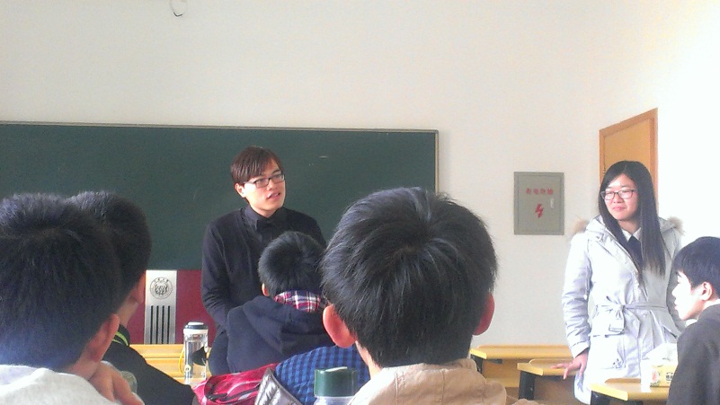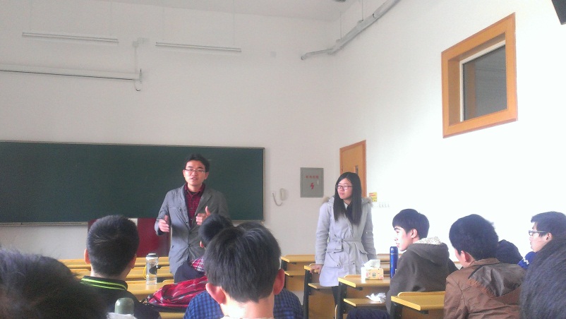 各年级优秀学生代表的积极配合下,借助形势政策课的平台,以高低年级交流为特色,给12级的6个班的新生上了生动而又多彩的一课。