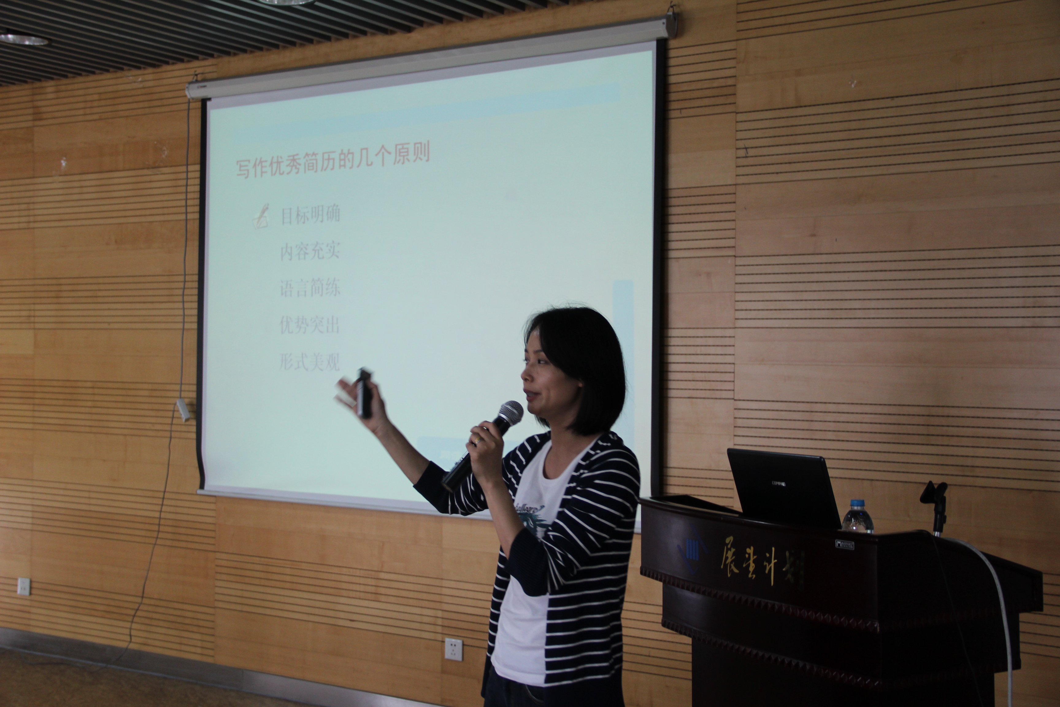 就业指导中心信息咨询部副主任、上海市中级职业咨询师朱华珍老师,为同学们做简历制作与面试技巧的专题讲座。p站