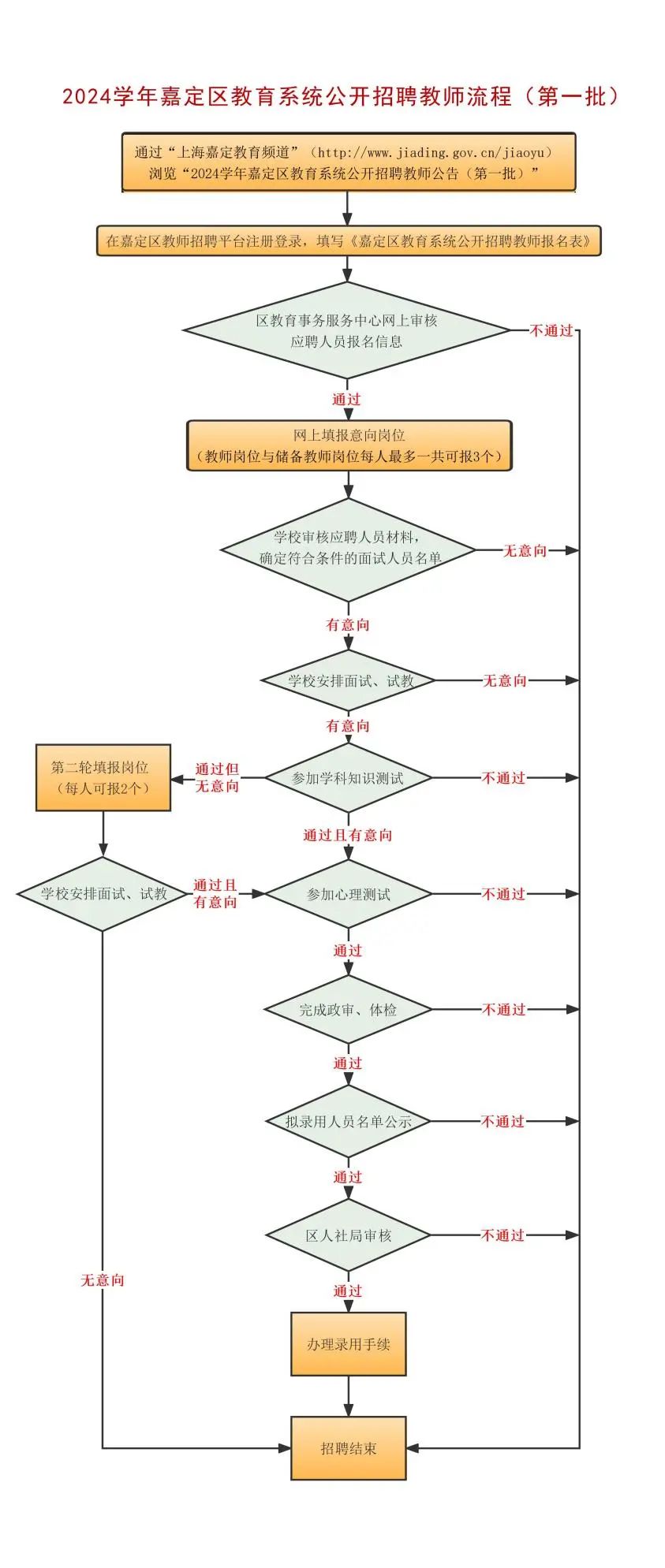 公示结束后,学校以1:1的比例确定意向人员,考生可在招聘平台上查询应聘状态,有意向人员的应聘状态显示“有意向”;学科测试通过人员但无意向单位的,应聘状态显示“无意向”;学科测试未通过人员,应聘状态显示“审核未通过”。应聘状态显示“无意向”的人员,可参加第二轮网上岗位报名,每人最多可报2个岗位,招聘单位组织应聘人员进行面试与试教,应聘流程同第一轮,具体时间安排请关注嘉定区教师招聘平台通知。