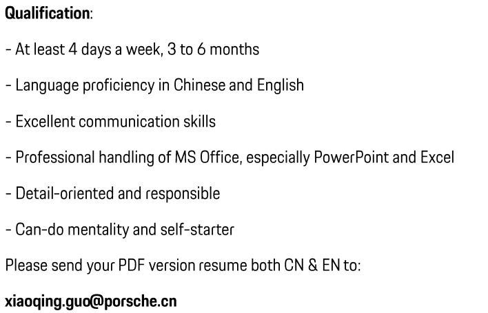保时捷中国总部客户赢取实习生