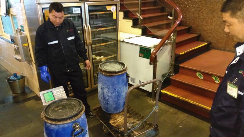 2011年,上海绿化市容部门调查发现,这些“游击队”背后还有正规环卫作业公司的影子。根据2005年实施的《上海市餐厨垃圾处理管理办法》,市容环卫部门批准25家有资质的环卫作业公司,但他们中有不少并未开展餐厨废弃油脂收运,而是以收取挂靠费的形式委托11家企业进行收运,导致一些个体“油老板”借着“正规回收”的名义兴风作浪。