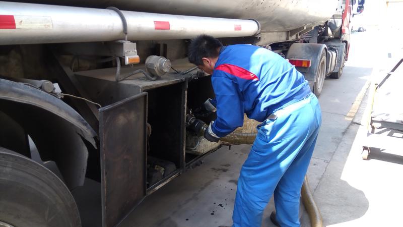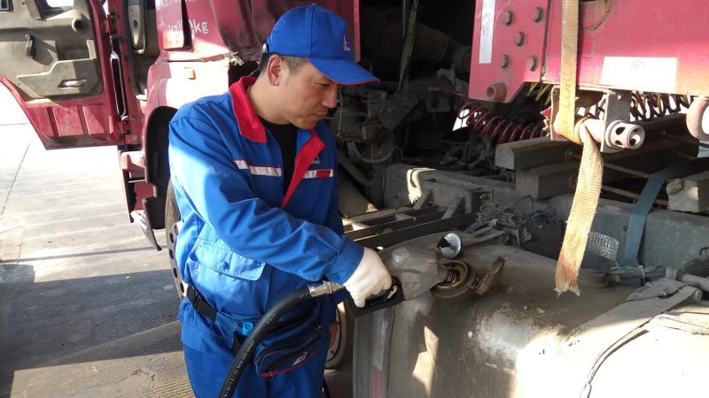 ⑫ 4月17日下午,中石化闵桥加油站内,加油员给卡车加注B5生物柴油。至此,“地沟油”形成了闭环管理。