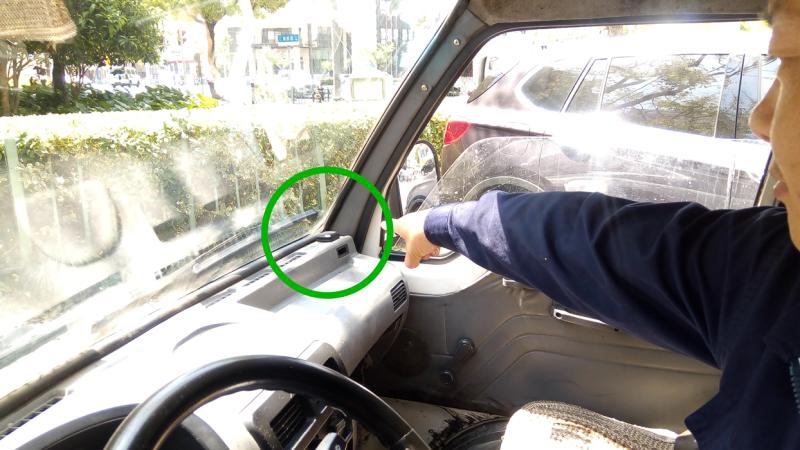⑤ 收运车驾驶室内,司机将GPS装置指给记者看,每天“地沟油”的物流都在监控下运行。
