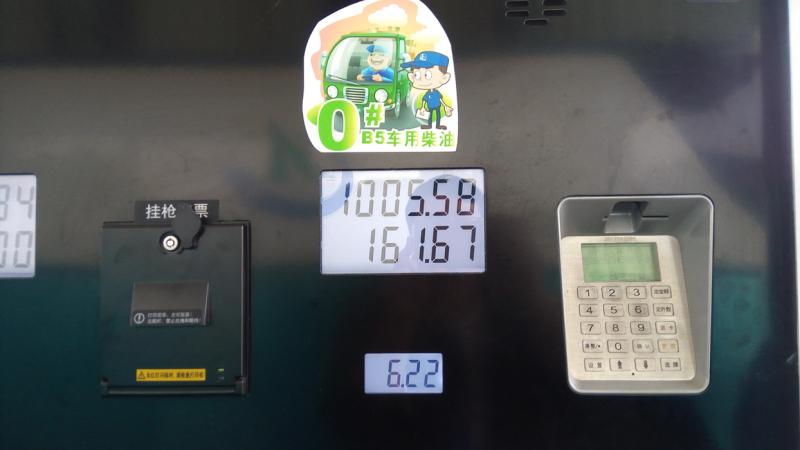 4月17日下午,中石化闵桥加油站内,B5生物柴油6.22元/升,比纯矿物质柴油便宜0.3元/升