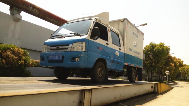 在收集桶被搬上专用收运车辆后,收运车开往奉贤星火开发区内的中器环保,在进门时再过一次磅秤,和系统此前记录的数据比对。